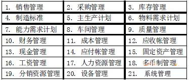云ERP的理论形成经历了基础MRP、封闭MRP、MRP以及云ERP的四个发展阶段。对于云ERP软件来说,其主要的功能模块在于销售、生产、财务这三大部分,具体的功能模块如表1所示。