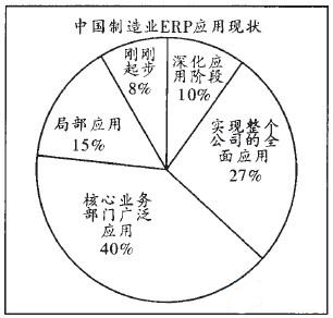 对381家国内石化、钢铁、飞机、船舶等企业调查显示,ERP应用比率高达80%,见图1,但是,应用最多的却是财务管理、库存管理模块;其次才是生产管理模块;最少的是车间管理模块,而后两者才能体现ERP的强大效力。其中,55%认为生产管理模块是ERP实施瓶颈,应用者不足6%,效果不理想;27%全面应用信息化,仅10%进入深化应用阶段;40%应用于部分业务部门;仍有15%处于局部应用阶段;8%才刚刚起步,见图2。当前生产管理模块应用仅局限于事后数据补录、简单统计,然而生产管控及产能预测应用很少;很多企业自行开发,品质难以保证。美国AMR调查显示,53%的客户反映ERP对工厂生产存在负面影响,体现在滞后数据统计分析、管理及人力成本上升。然而,生产管理模块是