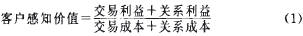 客户感知价值足一个复杂的概念。Zaithaml(1988)关于客户感知价值理论得到了学术界广泛的认可。他认为客户价值是由客户而不是供应商决定的。企业在为客户设计、制造、提供价值时应该以客户为导向,把客户对价值的感知作为决定因素。按照客户感知价值的特点,将客户感知价值定义为客户在购买和使用某一个产品的整个过程中对所获得的效用与所付出的成本的比较。并将其表示为V=U/C。其中U为客户得到的效用;C为客户付出的成本;V为客户价值。Gronroons进一步从关系角度阐述了客户价值。他认为。价值创造是关系营销的起点和终点,关系营销应该为客户和其他各方创造出比单纯交易营销更大的价值。为此,Gronroons提出了基于关系的客户感知价值数学模型: