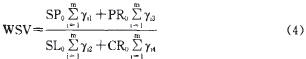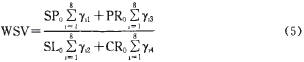 针对上述影响因素的分析,在将影响因素反映到模型的过程中时,可以将影响因素转换为比例因子代入模型(3)。为了能够实现比例因子分析,首先将模型(3)全景价值WSV的变量SP、SL、PR、CR视为上述影响因素的函数。用表示各影响因素在各变量函数中的值,其中i表示各因素对全景函数变量的贡献,i=1.2…、m,j用于区别作用在WSV的哪个变量上,j=1.2.3.4。例如,当j=1时,作用在变量SP上,当j=2时,作用在变量SL上等等。取值介于0~l。为便于比较,设(3)中各变量的标准值分别为,这些变量值可以根据企业过往的经验数据来确定。这样式(3)改写为